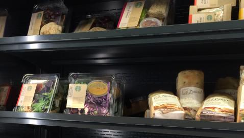 - Starbucks. This is my go-to, especially in Chicago where there’s a Starbucks on every city block. They always have fresh food, bananas and so many snacks. And if you need a meal they have great options for that as well, especially their egg white spinach feta wrap!